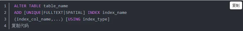 创建索引有两种方式,一种是直接利用CREATE INDEX进行创建,另外一种则是通过修改表结构来进行添加,则是利用ALTER TABLE语句。