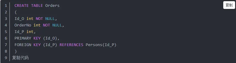 来创建外键,即一个表中的FOREIGN KEY指向另一个表中PRIMARY KEY。外键FOREIGN KEY用于约束破坏表的联结动作,保证两个表的数据完整性。同时也能防止非法数据插入外键列,因为该列值必须指向另一个表的主键。实例为: