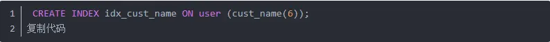 index_col_name表示需要创建索引的字段名称,我们还可以针对多个字段创建复合索引,只需要在多个字段名称之间以英文逗号隔开即可。此外,对于CHAR或VARCHAR类型的字段,我们还可以只使用字段内容前面的一部分来创建索引,只需要在对应的字段名称后面加上形如(length)的指令即可,表示只需要使用字段内容前面的length个字符来创建索引。在这里,我们以customers表的cust_name字段(类型为VARCHAR(50))为例,使用cust_name字段的6个字符前缀来创建索引。