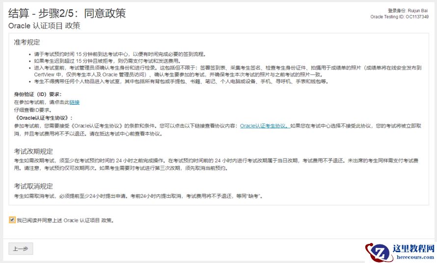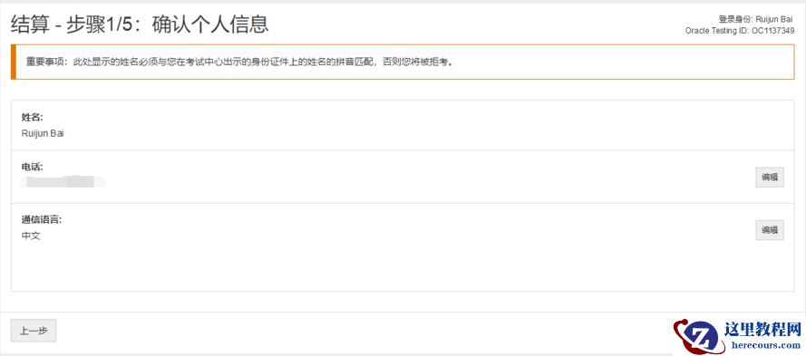 确定考试信息,无误的话就可以去结账了