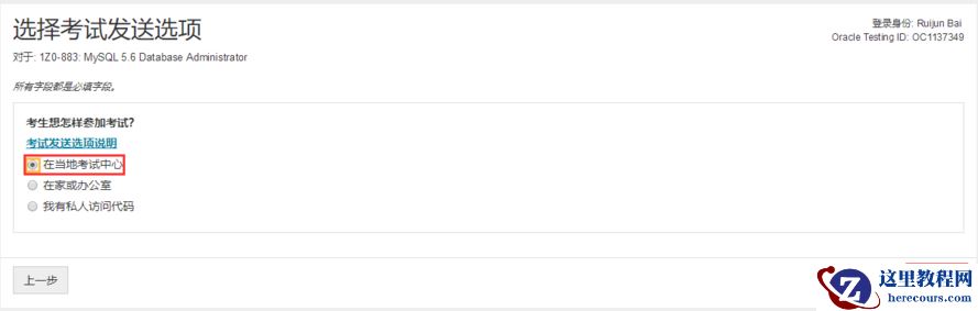 选择“在当地考试中心”,然后下一步