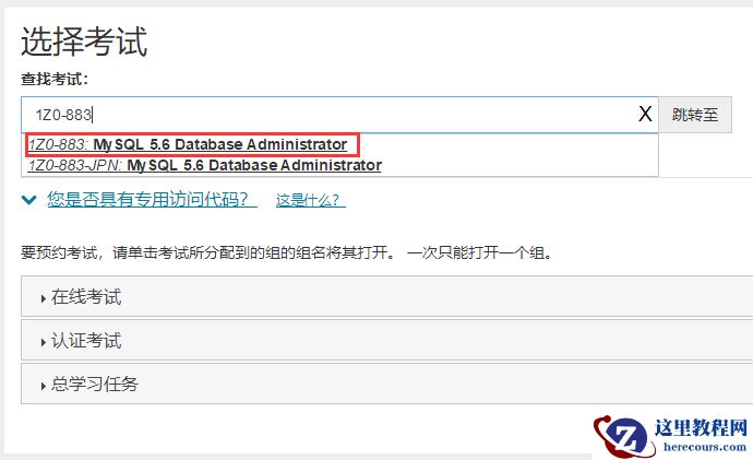 选择考试内容,由于我要考的是MySQL 5.6的OCP证书,所以此处输入的是1Z0-883