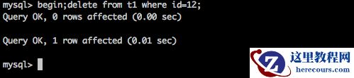 可以看到delete产生了一个意向排它表锁和一个排它行锁。