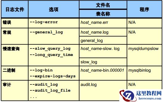 日志记录 : 可以通过启用所需日志的类型为服务器启用日志记录。以下选项可启用常规查询日志、二进制日志和慢速查询日志: