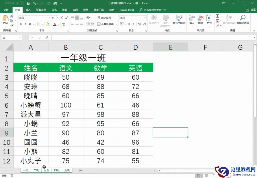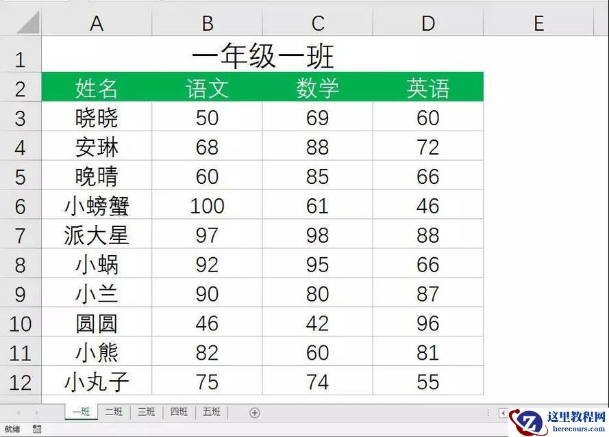 如下图,有五个工作表,我们需要制作一份工作表目录,点击指定的工作表名称就能直接跳转到此工作表的页面,能够更加方便我们管理工作表。