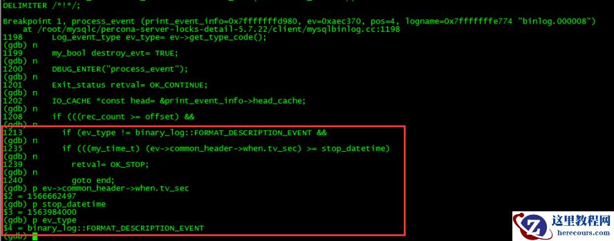 然后,使用mysqlbinlog解析binlog时,指定了--stop-datetime时间戳为2019-07-29 17:20:00,该时间小于FDE、Previous-GTIDs时间戳190729 17:22:00,根据上文中gdb调试的逻辑判断,指定的时间戳小于了FDE的时间戳,不满足条件,不再往后扫描(即使后续的数据event的时间戳为190729 17:19:18,满足小于mysqlbinlog指定的时间戳也无济于事),mysqlbinlog命令退出解析任务。