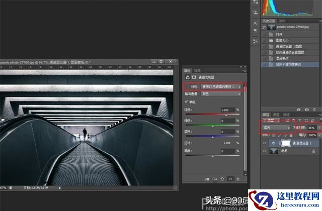 用“通道混合器”来增加图片的明暗对比,是一种非常简单的方法,但效果不错。首先,创建一个“通道混合器”调整图层,将它的预设改为“使用红色滤镜的黑白”,然后把图层混合模式设为“柔光”,最后,通过调整图层的不透明度来达到你想要得对比效果。