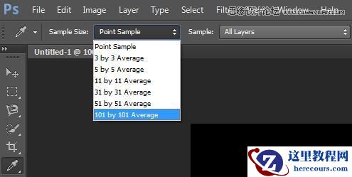 如果你正在处理一个含有杂色的高分辨率图像,是挺难选中你想要的颜色的,你会发现一不小心就选到了杂色的颜色上去了。正确的处理方法是改变采样范围的大小,使用平均采样当你选择吸管工具时,你会在选项栏上看到采样大小,选择一个更大的范围来屏蔽杂色的干扰。