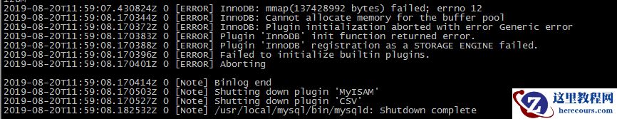 mysql启动提示 Cannot allocate memory for the buffer pool