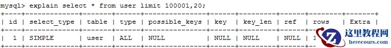 explain SELECT * from user limit 100001,20;
