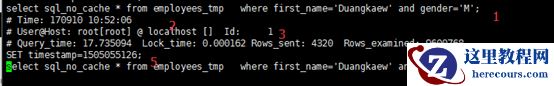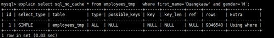 Sql查询语句:select sql_no_cache * from employees_tmp where first_name='Duangkaew' and gender='M'