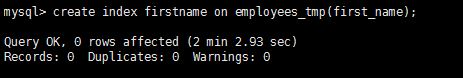 create index firstname on employees_tmp(first_name);