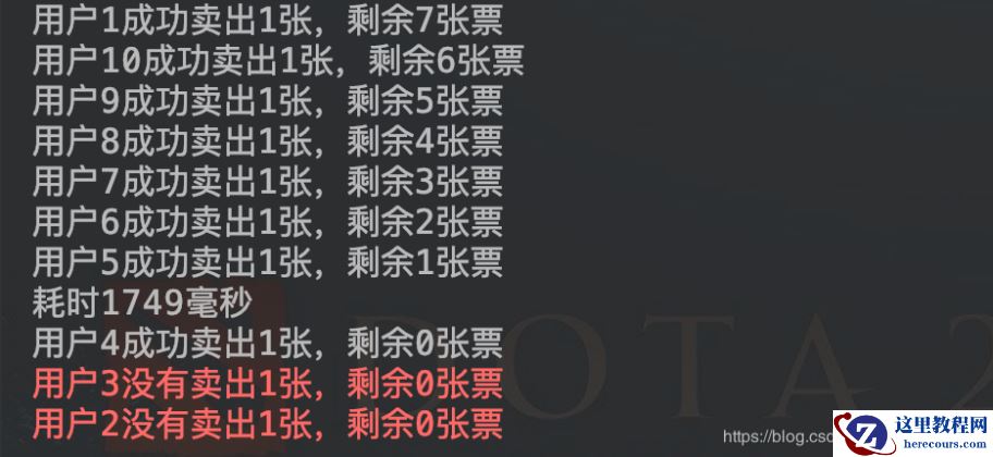 果不其然,结果有两个人没有成功抢到票,看来我们的目地达成了。