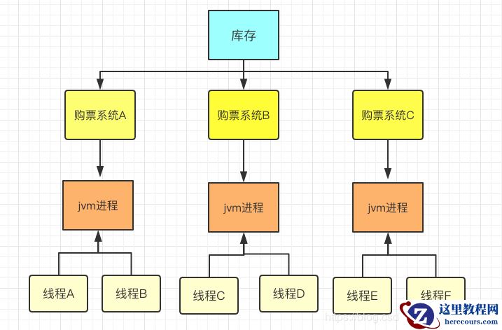 上图所示是我们搭建的分布式环境,有三个购票项目,对应一个库存,每一个系统会有多个线程,和上文一样,对库存的修改操作加上锁,能不能保证这6个线程的线程安全呢?