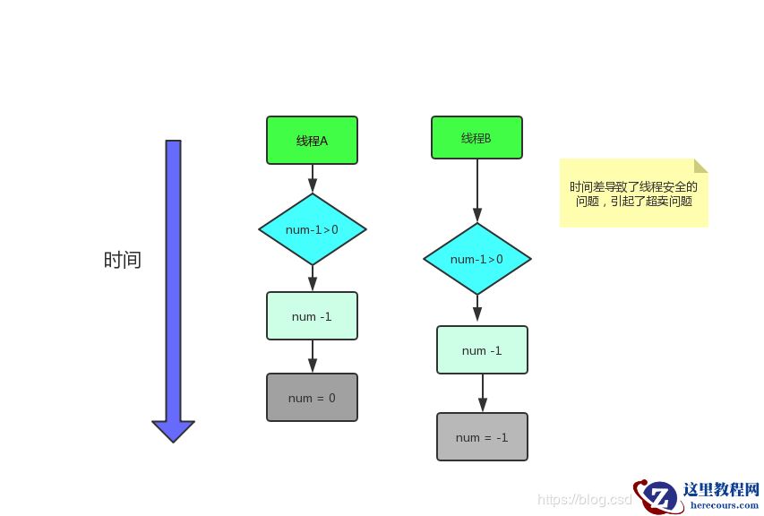 如图所示,只剩一张票了,但是两个线程都读到的票余量是1,也就是说线程B还没有等到线程A改库存就已经抢票成功了。