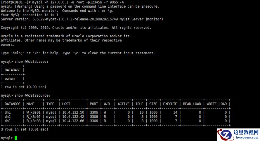 7.测试mycat实现的读写分离(登陆一次查询后要退出,再登陆查询)