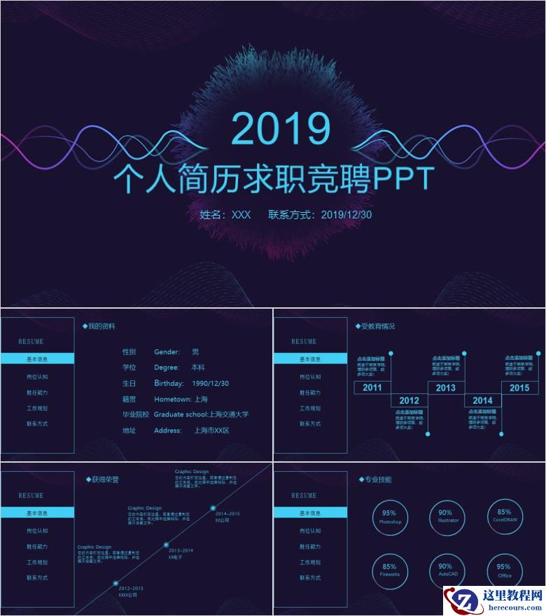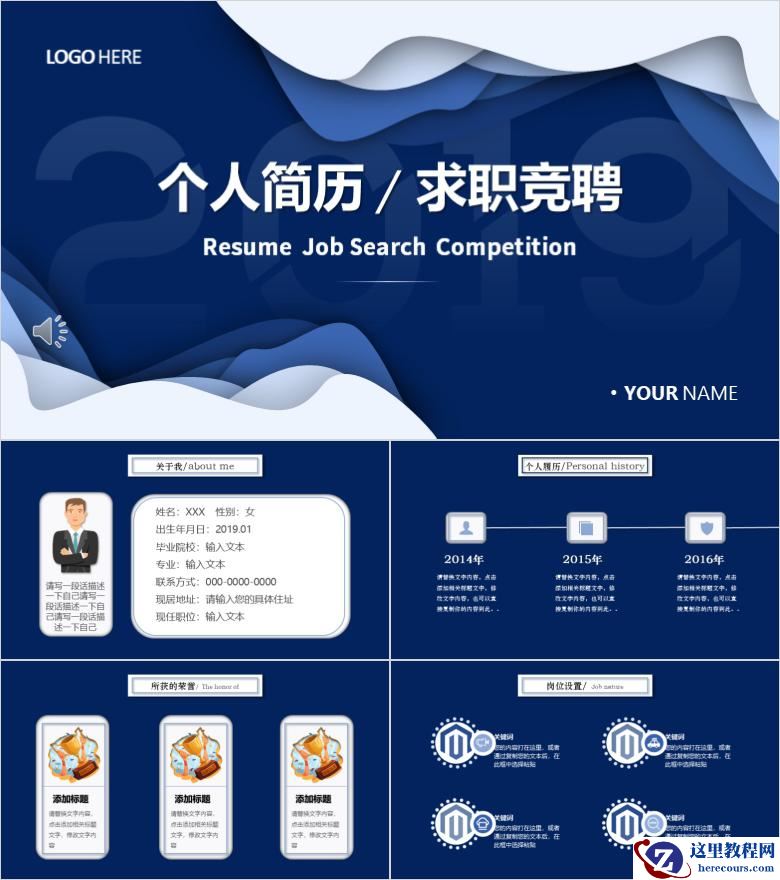 深蓝色经典淡雅个人简历求职应聘PPT模板分享