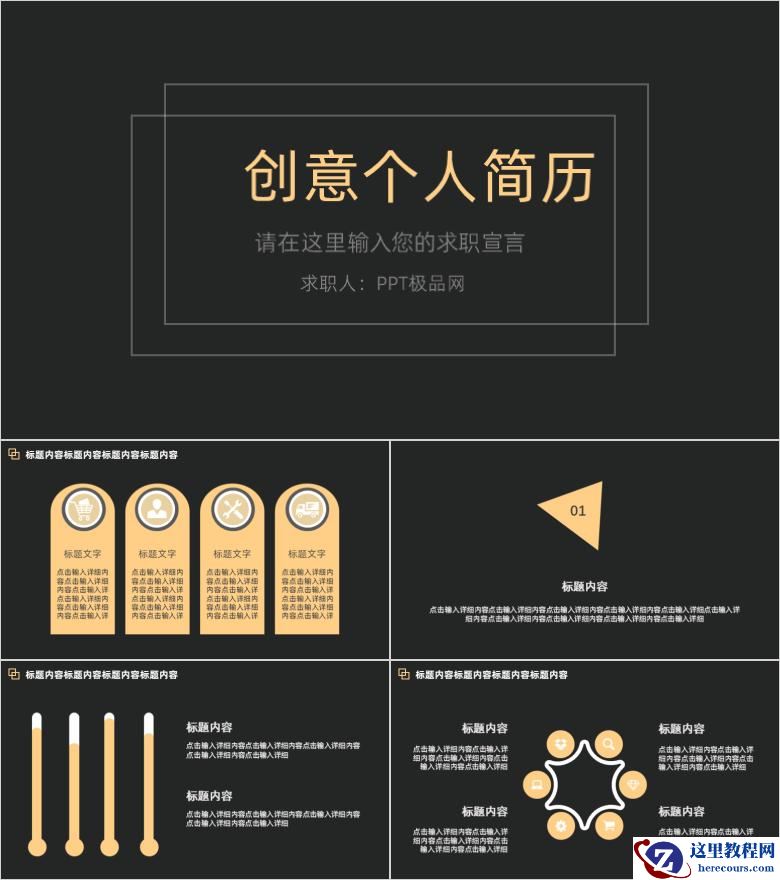 这个是ppt极品网带来分享的一份黑色背景创意作品,适用于个人 个性创意,应聘,简约风格等有特色的模板中。