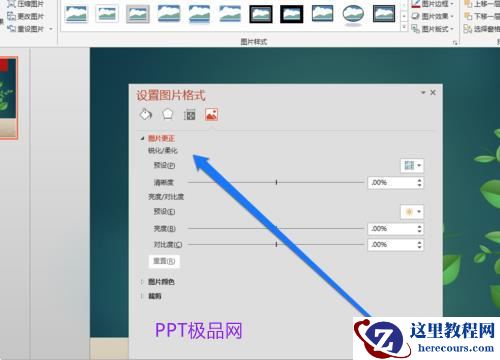 在“图片校正”按钮中,单击图片亮度并使用变黑的图像;