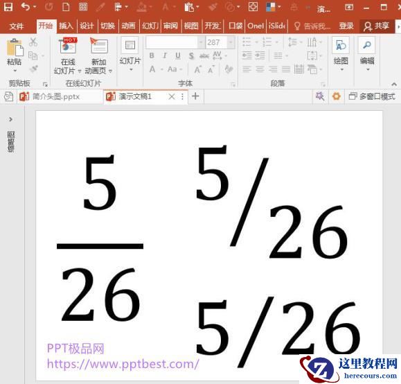 我们在制作PPT中,想要将PPT中分数的外观样式进行修改,怎样操作简单呢?下面是今天给大家分享的方法,一起来看看吧!PPT中插入的分数有三种类型:垂直、倾斜和水平。你可以根据自己的需要在三种款式之间切换。