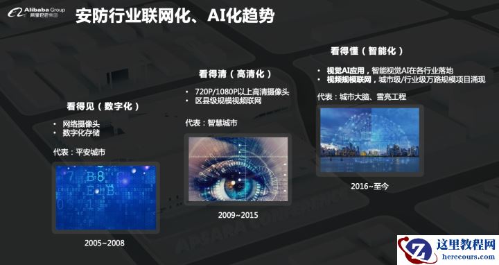 第二个场景是关于安防,安防场景经历了三个时代,2005年到2008年是解决数字化的问题,摄像头IP化、存储数字化。2009年到2015年是智慧城市项目的诞生,以区县级的视频联网为主,这个时代摄像头跟摄像头之间的运算依然相对比较孤立。2016年到至今,城市大脑不断推进,摄像头进入了智能化时代,每个摄像头是一个眼睛,把采集到的数据汇集到云端做更复杂的运算,必定会带来全新业务场景的诞生。