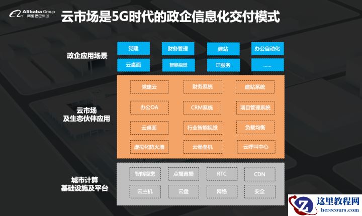第一个是政企应用软件的场景,这个场景在IT时代更多是通过盒装软件的方式进行交付,在云的时代则通过SaaS化模式进行交互。SaaS化的交互模式具有更强的接入便利性、更经济的运维及交付成本、更快的响应速度,最终可以为客户创造价值。所以SaaS化交付模式以每年15%的市场增速在发展。阿里云有云市场,事实证明这种模式是非常健康。5G与边缘计算加速由局域网到城市级计算的转型,也加速了SaaS化企业应用软件时代的到来。