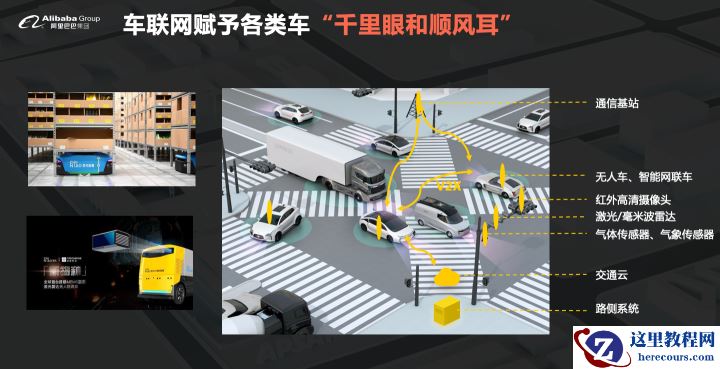 第三个场景是关于车联网的场景,这是阿里集团的一些实践,比如菜鸟物流园区内无人车运货、高校内无人车送货等等方案。把这个场景打开就是无人驾驶、车路协同。在局域网时代,交通运维系统可能是以路测系统为主,5G与边缘计算可以保障高稳定性、广覆盖以及瞬时响应的网络覆盖,同时也有助于无人车传感器、摄像头、毫米波雷达等终端数据更快地采集、汇总、分析及进行判断,进而更快指导无人车针对周围环境做出更智能、更精确地反馈,从而大幅提升自动驾驶的性能。