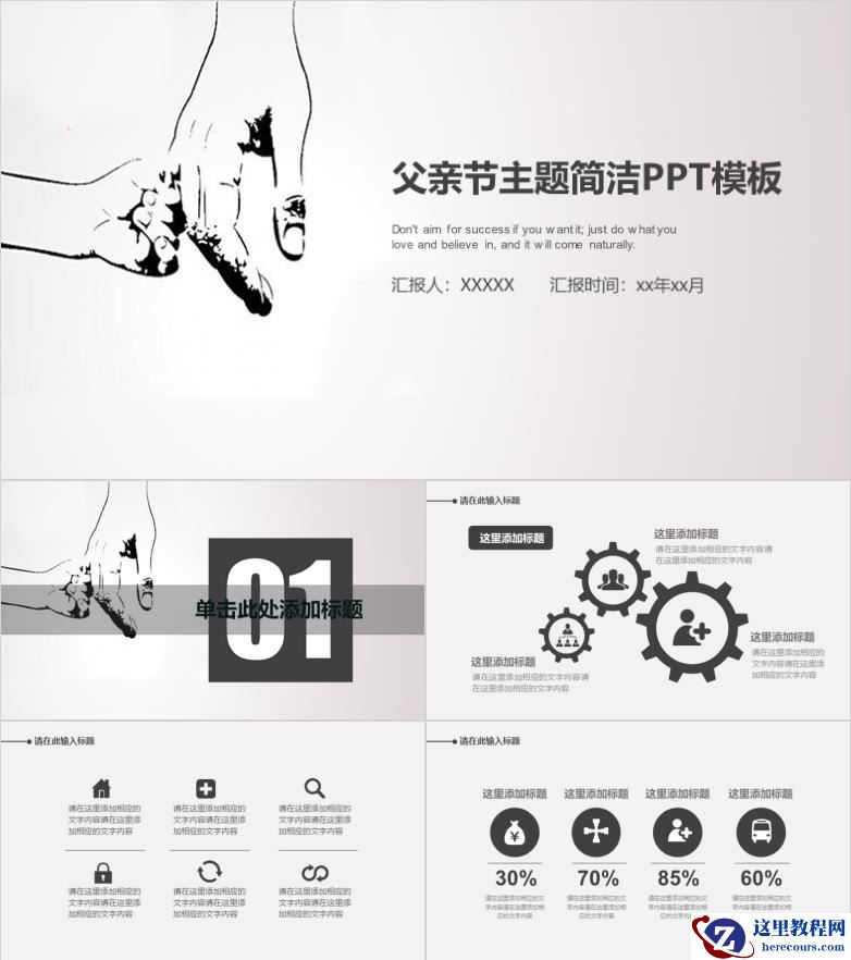 灰色系简洁手牵手父亲节PPT模板