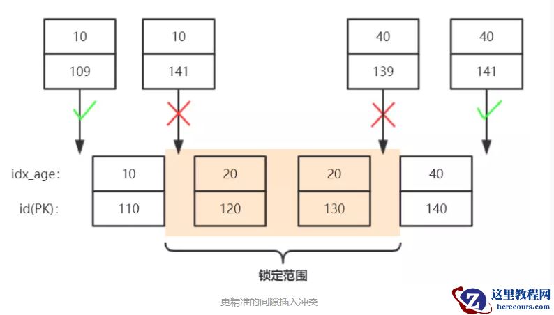 语句8插入值预计为:40_141,为什么只有后者能插入呢? 其实我们可以将B+树中的间隙理解得更加 精准一点: