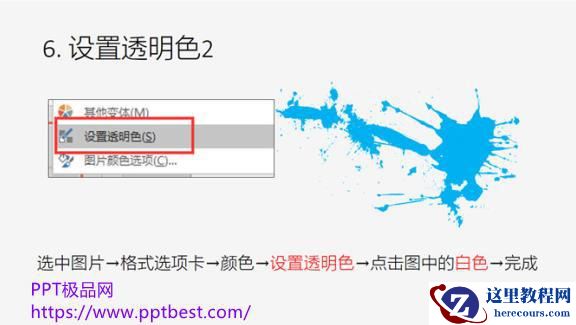 步骤六.选中图片在格式的选项里将颜色设置成透明色然后点击图中的白色就完成了。