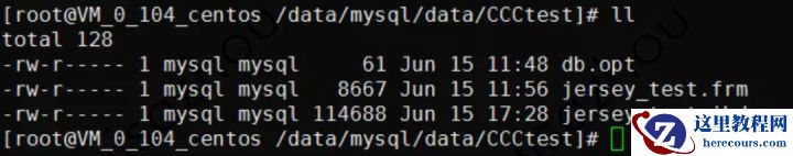 我们进入到 MySQL 的 /data 目录下面,可以看到”jersey_test.frm”文件和”jersey_test.ibd”文件。