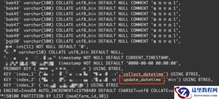 看到这里,感觉又是一例在ROW模式下表没有主键,引起的主从延迟。看看表结构确认一下,发现这张表不小,字段有上百个,有主键,且是一张分区表,分区很多。这就有意思了!并不是我们碰到过多次的由于ROW模式下没有主键,DML引起的主从延迟(PS:为什么这种情况下会引起延迟?而是有主键,且走了二级索引,那为什么回放还会这么慢呢?)。