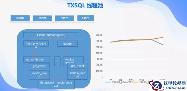 大家可能都用过线程池,如果你并发数很多的时候应该要用到线程池,不然的话随着并发数的增加数据库的性能会急速下降。TXSQL也提供线程池的支持,而且TXSQL线程池对线程池做了优化,我们避免了有请求被饿死的情况。让低优先级的用户在等了很长时间后,到达一个预定的值的时候,我们会提升它的优先级,让它先执行。