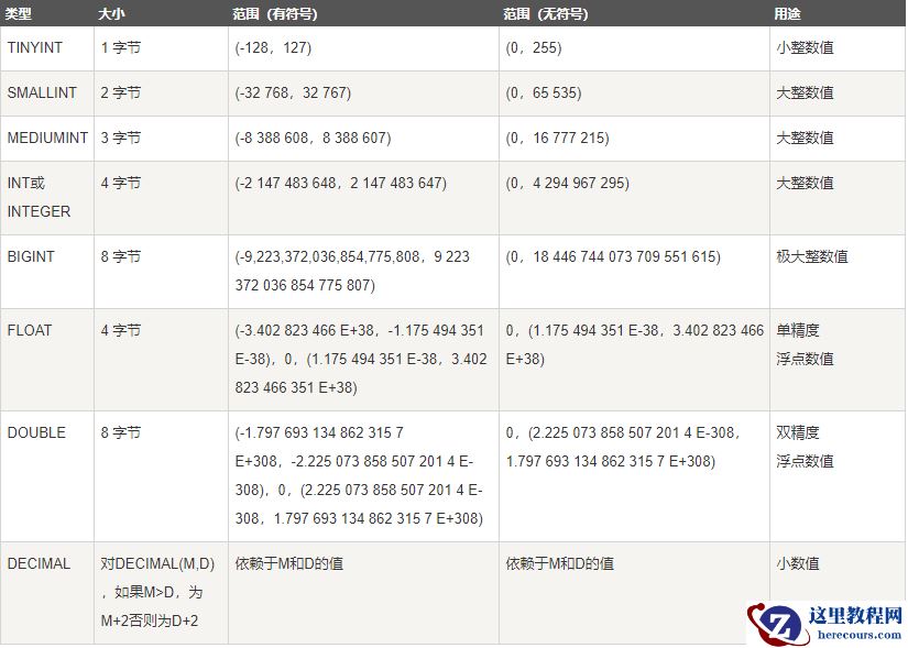 (1)数值类型
