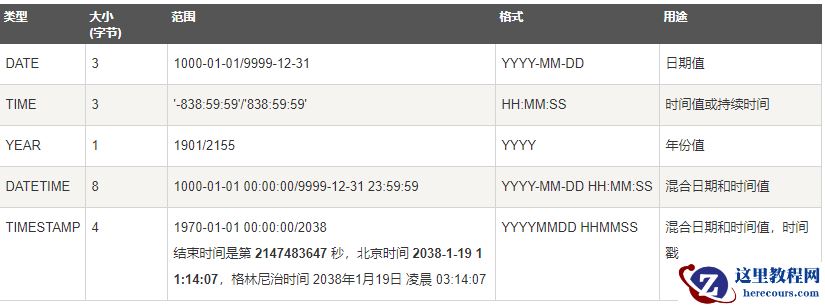 (2)日期和时间类型