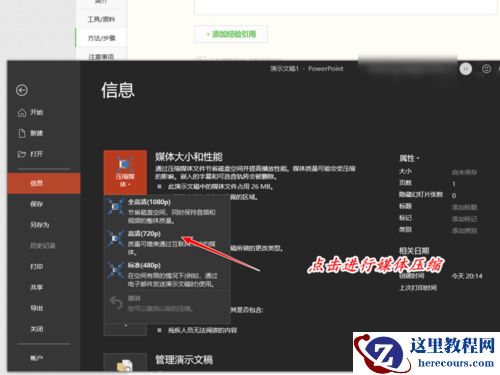 单击“信息”菜单,选择压缩介质的大小,然后选择适当的压缩大小;