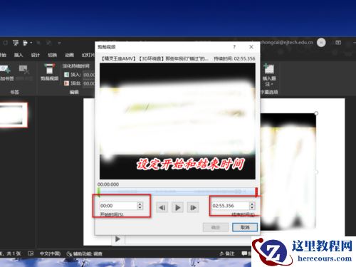 接下来,我们在视频裁剪框中设置开始和结束时间,然后单击确定;