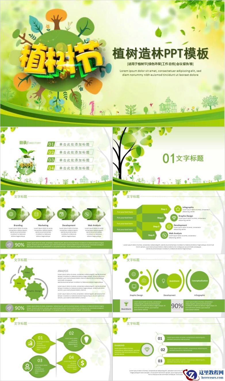 清新简约绿色环保植树节教育宣传PPT模板