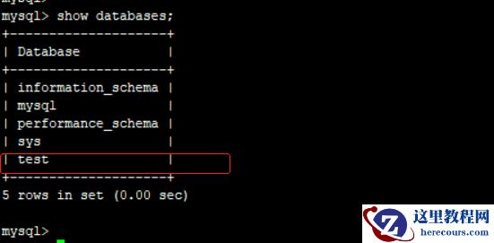4.验证1)主库mysql> create database test;2)从库mysql> show databases;