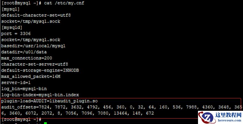 修改/etc/my.conf添加内容如下:plugin-load=AUDIT=libaudit_plugin.soaudit_offsets=7824, 7872, 3632, 4792, 456, 360, 0, 32, 64, 160, 536, 7988, 4360, 3648, 3656, 3660, 6072, 2072, 8, 7056, 7096, 7080, 13464, 148, 672