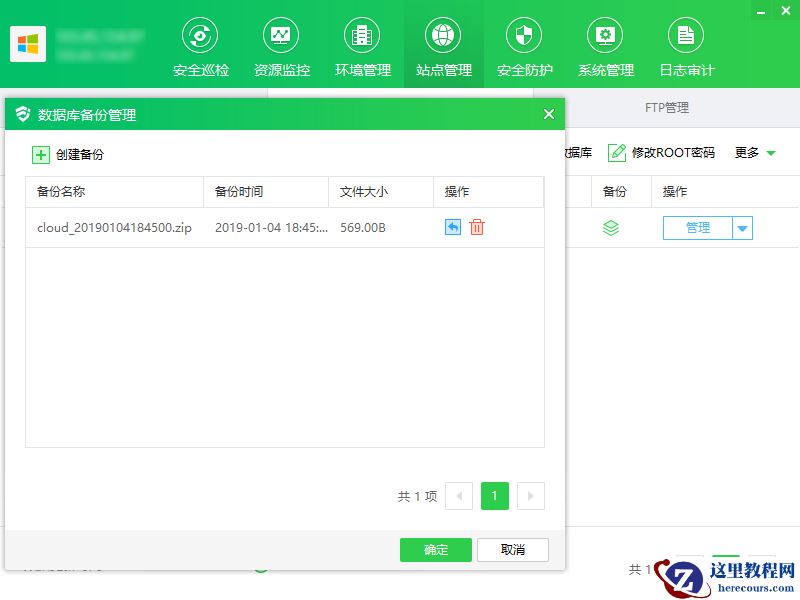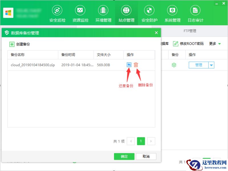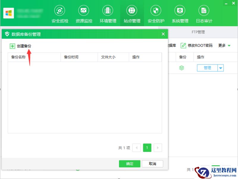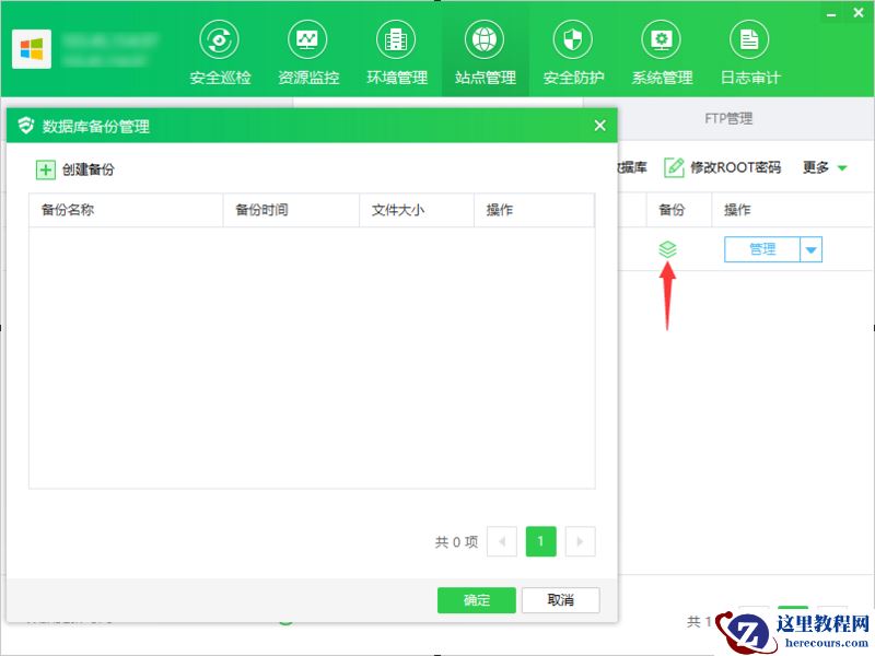 ① 点击"备份",显示数据库备份管理弹框
