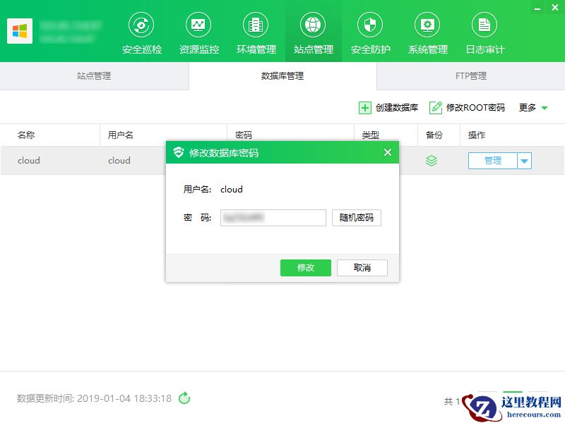 ② 点击“改密”,显示修改数据库密码弹框