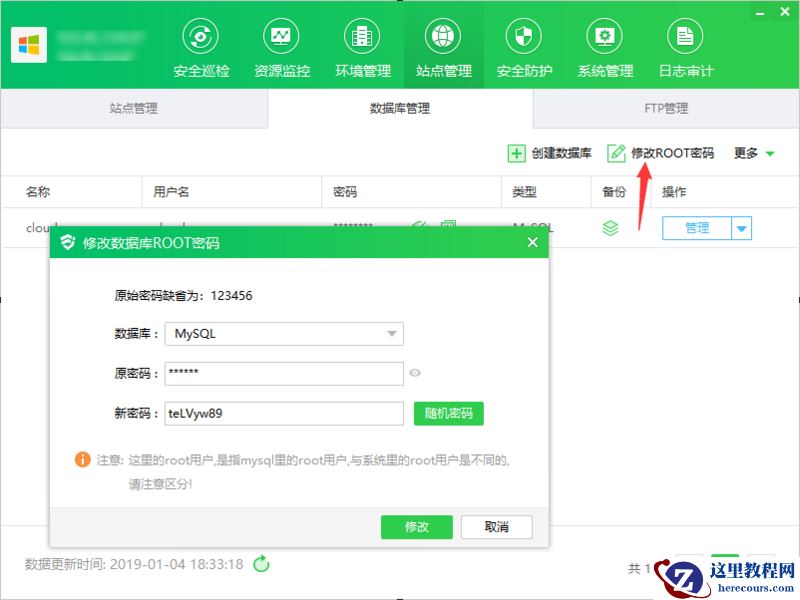 1.点击"修改 ROOT 密码",显示修改数据库 ROOT 密码弹框