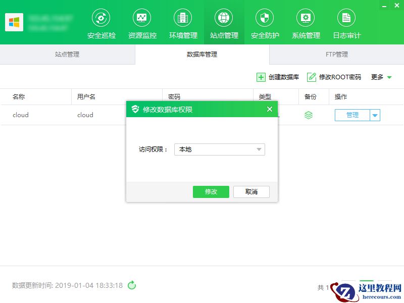① 点击“权限”,显示修改数据库权限弹框