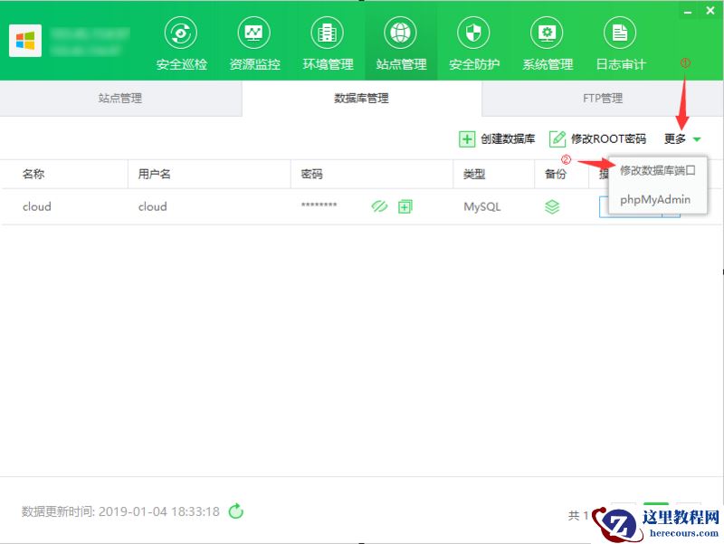 1. 依次点击:更多 -> 修改数据库端口
