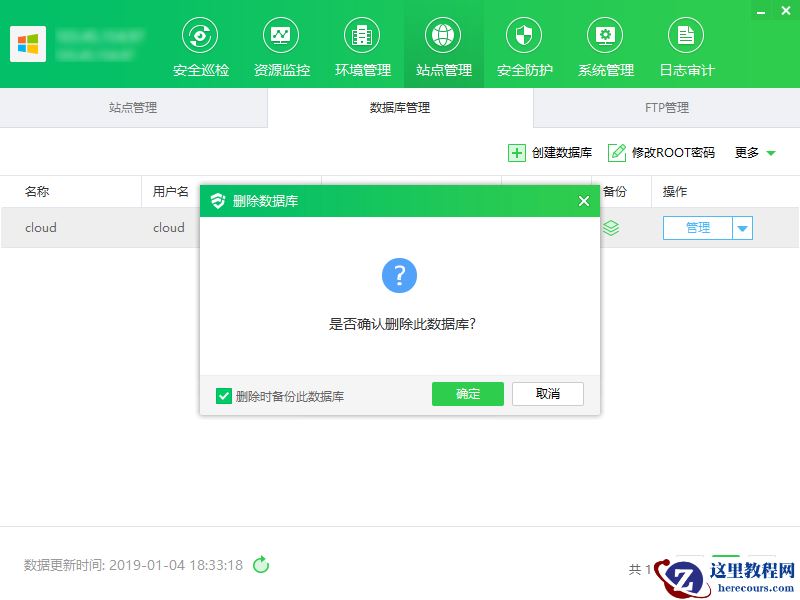 ③ 点击“删除”,显示删除数据库弹框