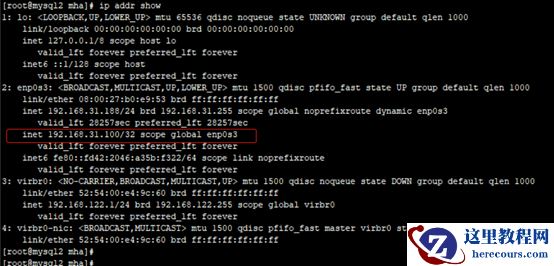 [root@mysql ~]# ip addr add 192.168.31.100 dev enp0s3