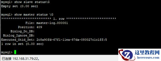注:如果以上执行change master有报错, Last_IO_Error: Got fatal error 1236 from master when reading data from binary log: 'The slave is connecting using CHANGE MASTER TO MASTER_AUTO_POSITION = 1, but the master has purged binary logs containing GTIDs that the slave requires.'