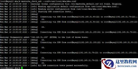 [root@mysql2 mha]# masterha_check_ssh --conf=/usr/local/mha/mha.conf