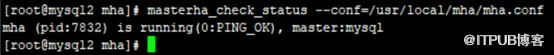 [root@mysql2 mha]# nohup masterha_manager --conf=/usr/local/mha/mha.conf > /tmp/mha_manager.log < /dev/null 2>&1 &